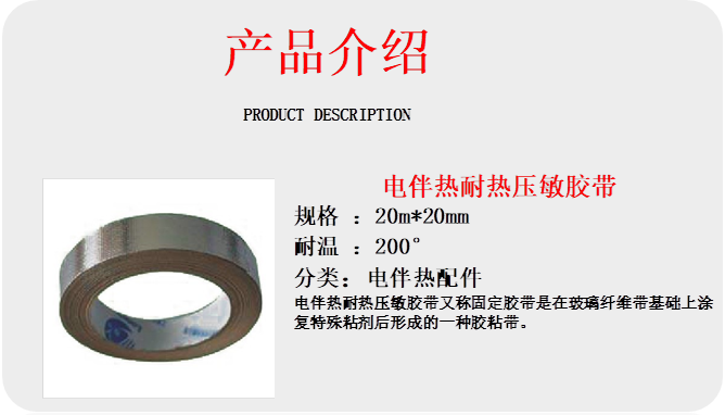 該帶寬20mm,每卷為30m,主要沿管道徑向?qū)㈦姛釒Ч潭āE鋫溟L度視伴熱管線外徑及長度而定。其間隔距離視管線直徑大小而定,一般為0.5-0.8m.