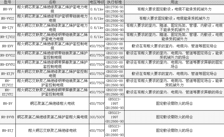 本產(chǎn)品適用于固定敷設需防火的場合。如高層建筑、地下鐵道、核電站、發(fā)電廠、機場、油田、化工廠及重要的工礦企業(yè)等與消防救生有關場合,同時又是應急電源、消防泵、電梯、通訊信號系統(tǒng)必備電纜。