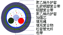 產(chǎn)品型號: GYSTA53也叫(GYTA53) 光纖松套管 金屬中芯加強件 纜芯填充油膏 雙涂料鋁帶粘結(jié)PE內(nèi)護套 軋紋鋼帶粘結(jié)PE外護套 | |||