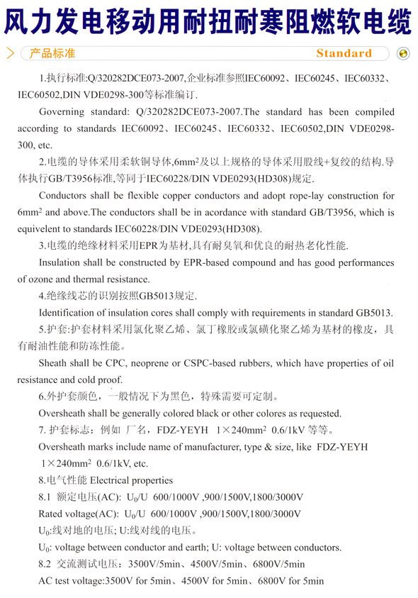 風力發電移動用耐扭耐寒阻燃軟電纜